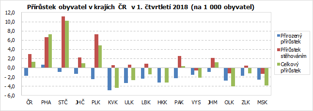Počet obyvatel kraje v 1. čtvrtletí 2018 opět poklesl