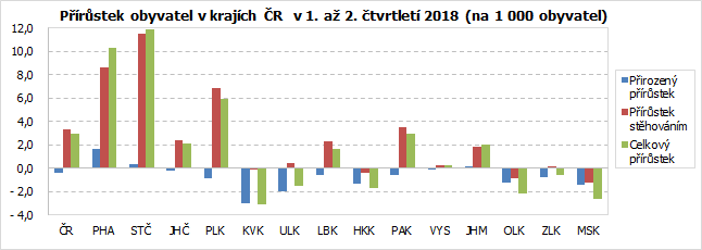 Počet obyvatel kraje v 1. pololetí 2018 mírně vzrostl