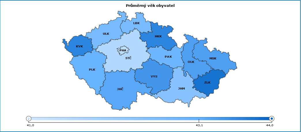 Populace České republiky stárne. Průměrný věk obyvatel dosáhl 42,7 let a od předchozího sčítání v roce 2011 zestárli muži i ženy v průměru o 1,7 let. Z hlediska průměrného věku patří obyvatelstvo Vysočiny k těm starším. Průměrný věk obyvatel na Vysočině je 43,4 let, což v porovnání s ostatními kraji znamená obsazení čtvrté pozice za krajem Zlínským, Královéhradeckým a Karlovarským. Muži a ženy na Vysočině zestárli za poslední desetiletí v průměru o 2,3 let. Při zohlednění pohlaví lze konstatovat, že mužům z Vysočiny bylo v době sčítání průměrně 42 let, ženám 44,7 let.