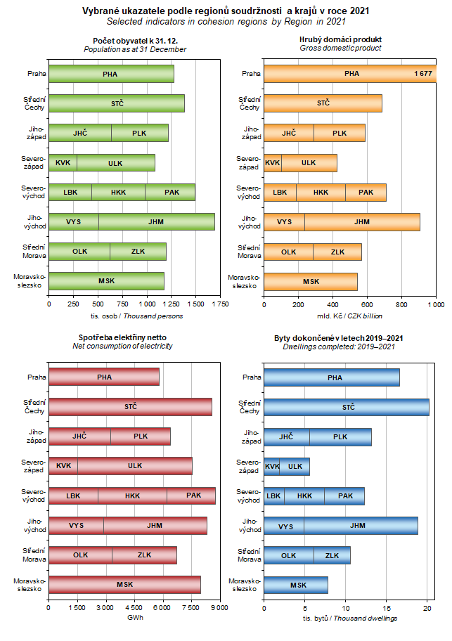 Vybrané ukazatele regionů soudržnosti NUTS2 v roce 2021