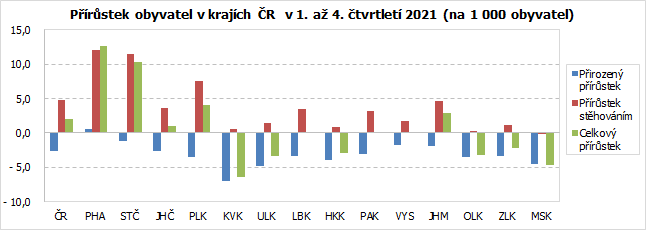 - Stav a pohyb obyvatelstva v ČR - rok 2021Předběžné výsledky přirozeného a mechanického pohybu obyvatelstva od počátku roku.