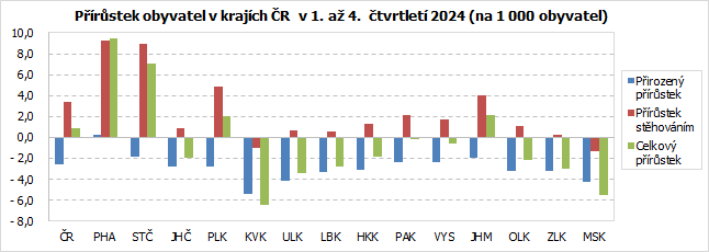 Rok 2024: počet obyvatel kraje dále poklesl