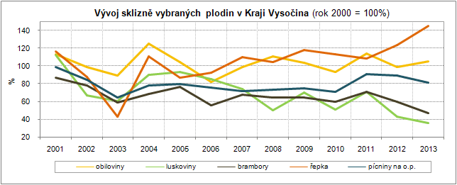 Ve sklizni luskovin se Vysočina umístila s produkcí 4 543 tun na třetím místě za Jihomoravským a Středočeským krajem, sklizeň řepky byla čtvrtá nejvyšší za Středočeským, Jihočeským a Jihomoravským krajem. Plochy řepky byly proti předchozímu roku rozšířeny o 630 ha, tj. o 1,5 %, sklizeň přesáhla 144 tisíc tun při výnosu 3,37 tuny z hektaru.