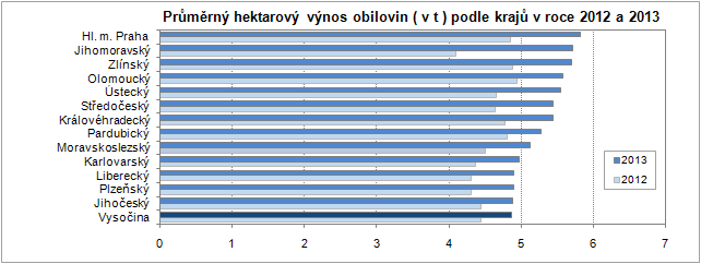 V roce 2013 sklidili zemědělci na Vysočině 4,86 tuny obilovin z jednoho hektaru, což je nejnižší výnos v rámci České republiky. Na prvním místě pomyslného žebříčku se umístil Jihomoravský kraj s výnosem 5,72 t/ha. Vysočina vzhledem k přírodním podmínkám nemůže konkurovat produkčním oblastem, jako je střední a jižní Morava, střední Čechy nebo Polabí.