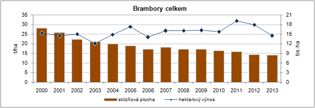 Vysočina je tradičně dominantním krajem v pěstování brambor. Také v roce 2013 se kraj podílel více než jednou třetinou na celkové produkci brambor v ČR. Ostatních brambor (konzumní + průmyslové) bylo na Vysočině sklizeno 156 tisíc tun, což je proti sklizni v roce 2012 o 44 tisíc tun méně, výměra brambor se v roce 2013 sice zmenšila o 2,5 % (o 154 ha), ale vlivem suchého léta byl proti předchozímu roku zaznamenán výrazně horší hektarový výnos, a to 25,83 tuny (pokles o 6,4 tuny z hektaru).