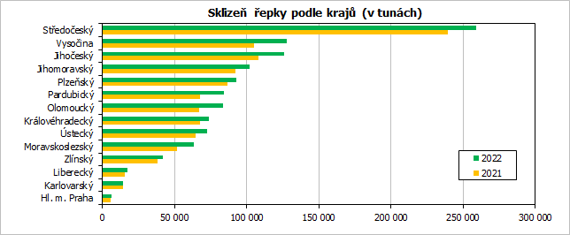 - druhou nejvyšší sklizeň řepky (127,6 tis. tun v roce 2022)