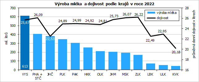 - nejvyšší výrobu mléka (612,6 mil. litrů v roce 2022)