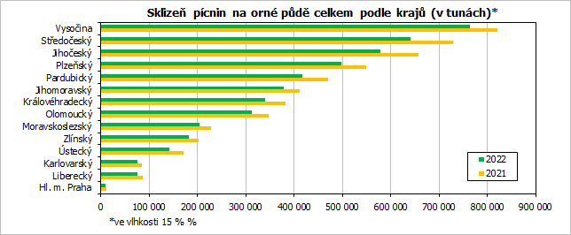 - třetí nejvyšší sklizeň luskovin (11,2 tis. tun v roce 2022)