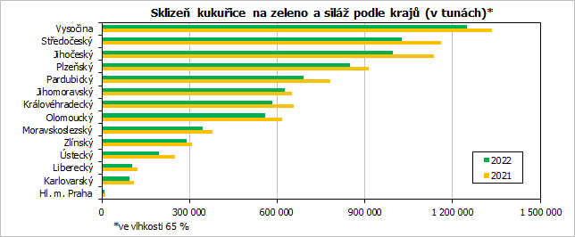 - nejvyšší sklizeň kukuřice na zeleno a siláž ve vlhkosti 65 % (1 248,8 tis. tun v roce 2022)
