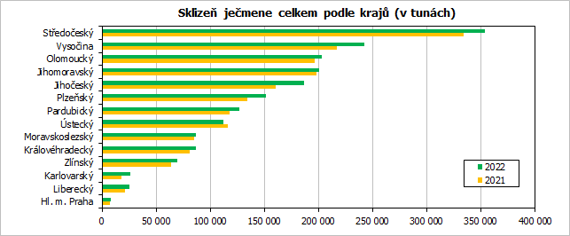 - druhou nejvyšší sklizeň ječmene celkem (241,8 tis. tun v roce 2022)