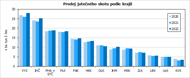 - nejvyšší prodej jatečného skotu (28 tis. tun ž. hm. v roce 2022)