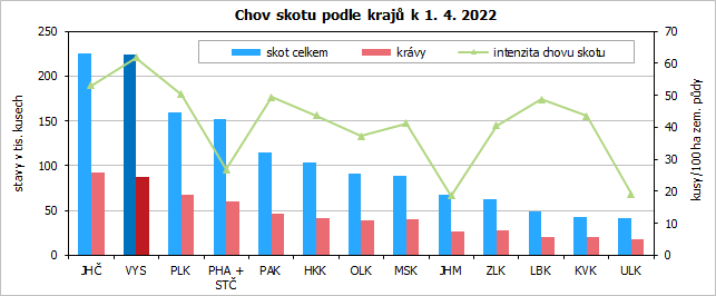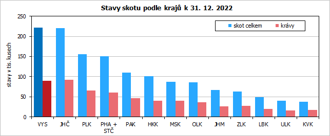 - nejvyšší stavy skotu (221 268 kusů k 31. 12. 2022)