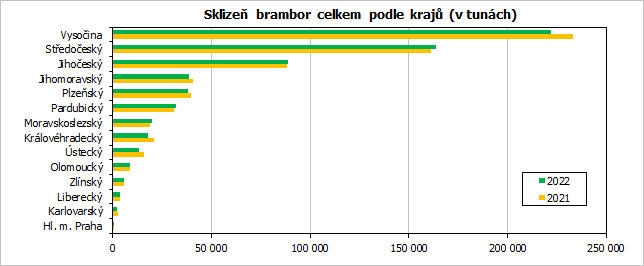 - nejvyšší sklizeň brambor (221,9 tis. tun v roce 2022)