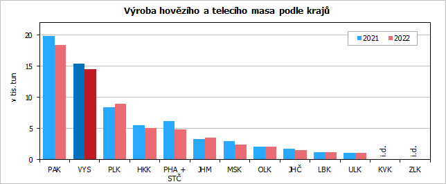 - druhou nejvyšší výrobu hovězího a telecího masa (14,5 tis. tun v roce 2022)