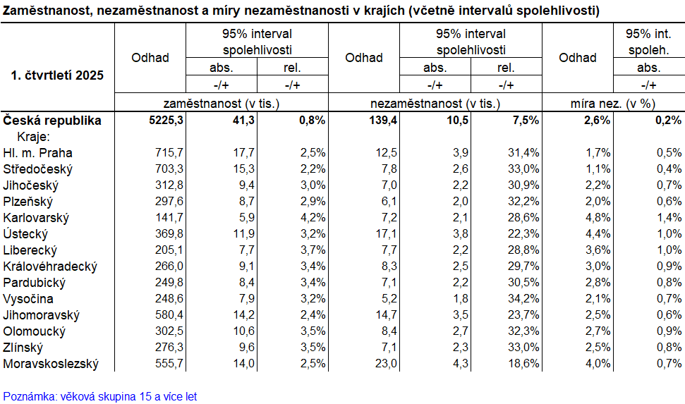 Ukazatele jsou odhadem získaným z Výběrového šetření pracovních sil ČSÚ.
