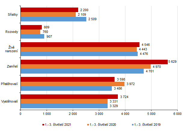 Demografický vývoj ve Zlínském kraji v 1. až 3. čtvrtletí 2021