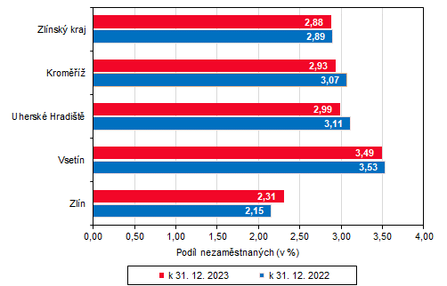 Nezaměstnanost ve Zlínském kraji k 31. 12. 2023
