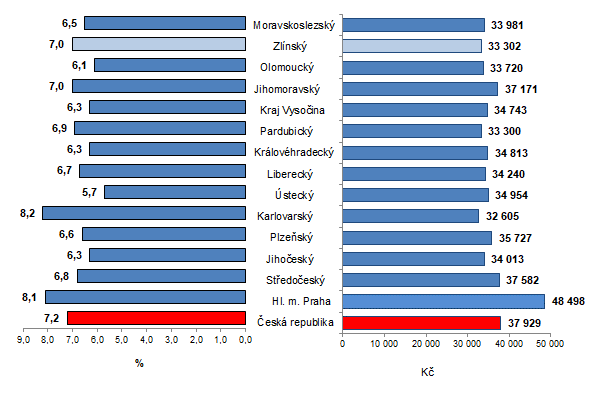 I přesto, že mzdy ve Zlínském kraji vzrostly o 7,0 %, tedy o 2 165 Kč, zůstala průměrná mzda pod celorepublikovým průměrem a v mezikrajském srovnání i třetí nejnižší. Proti krajům Pardubickému a Karlovarskému, které měly nejnižší hodnotu tohoto ukazatele (33 300 Kč a 32 605 Kč) v rámci České republiky, byla průměrná mzda v našem kraji vyšší jen o 2 Kč (oproti Pardubickému kraji) a o 697 Kč (oproti kraji Karlovarskému).